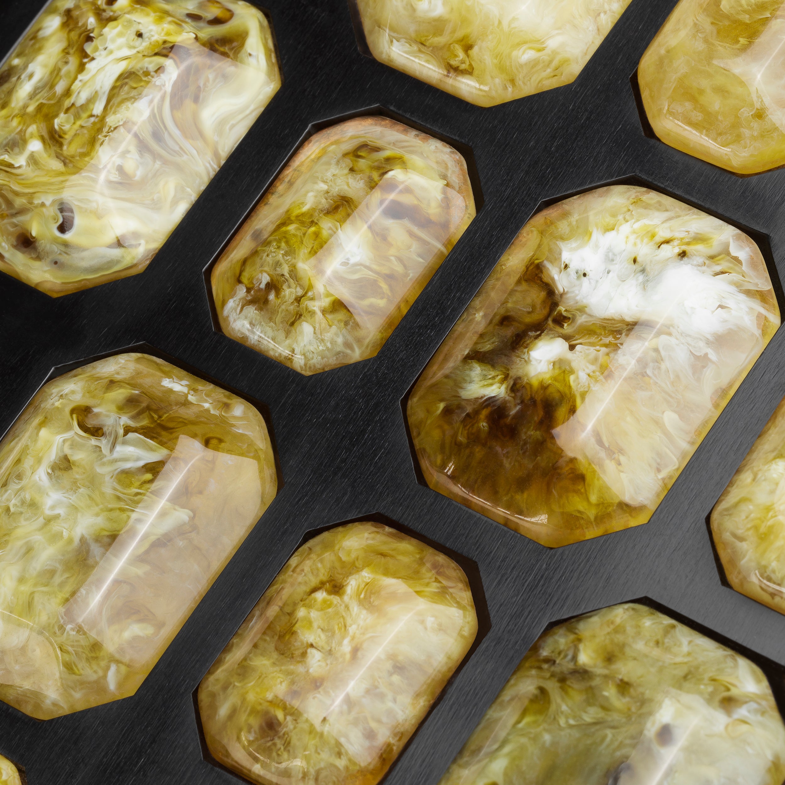 Translucent black faux amber finish for a deep and bespoke visual texture