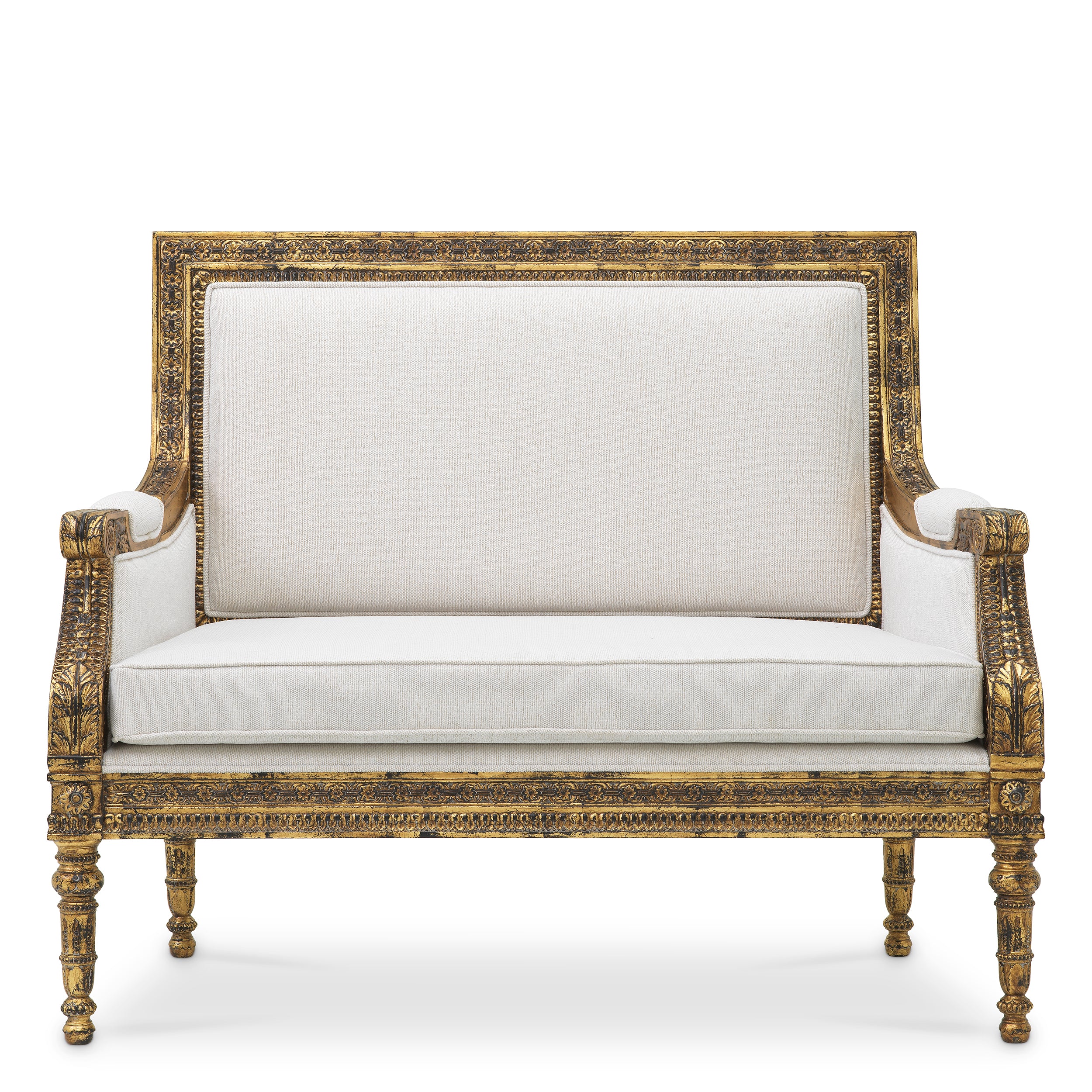 Lustrous antique gold finish applied with traditional techniques