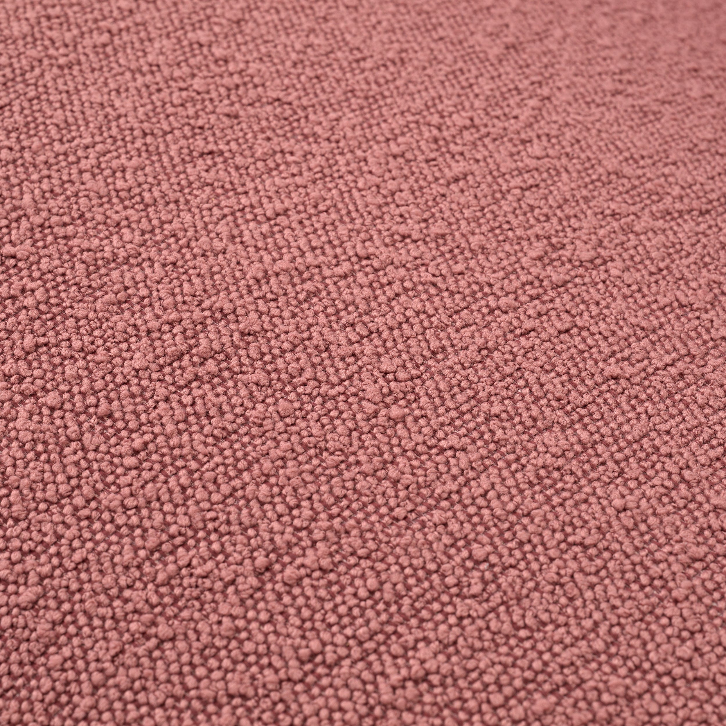 The rose bouclé fabric is tactile and inviting, inviting guests to linger. Its compact footprint makes it versatile for smaller spaces while still offering generous seating comfort. The understated silhouette blends with a range of décors from contemporary to classic.